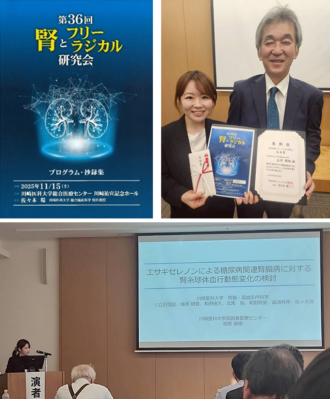 令和7年11月15日(土曜日)、川崎医科大学総合医療センター 川﨑祐宣記念ホールにて第36回腎とフリーラジカル研究会を開催し、当科の前教授 佐々木 環が大会長を務めました。本研究会は、活性酸素・フリーラジカルが及ぼす影響について腎臓に特化して臨床・基礎研究を討論する場を提供してまいりました。これまでの先達の活躍と貢献により、医学的興味や志向を同じくする者達が集い、顔を合わせて時間や想いを共有できる貴重な機会として、多くの医療関係者が参加する会へと発展を遂げてきました。今年も本研究会が、参加された皆さまにとって新たな気づきや学びをもたらし、交流の輪を広げるきっかけとなっていれば大変嬉しく思います。